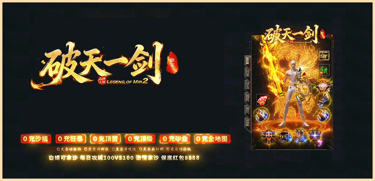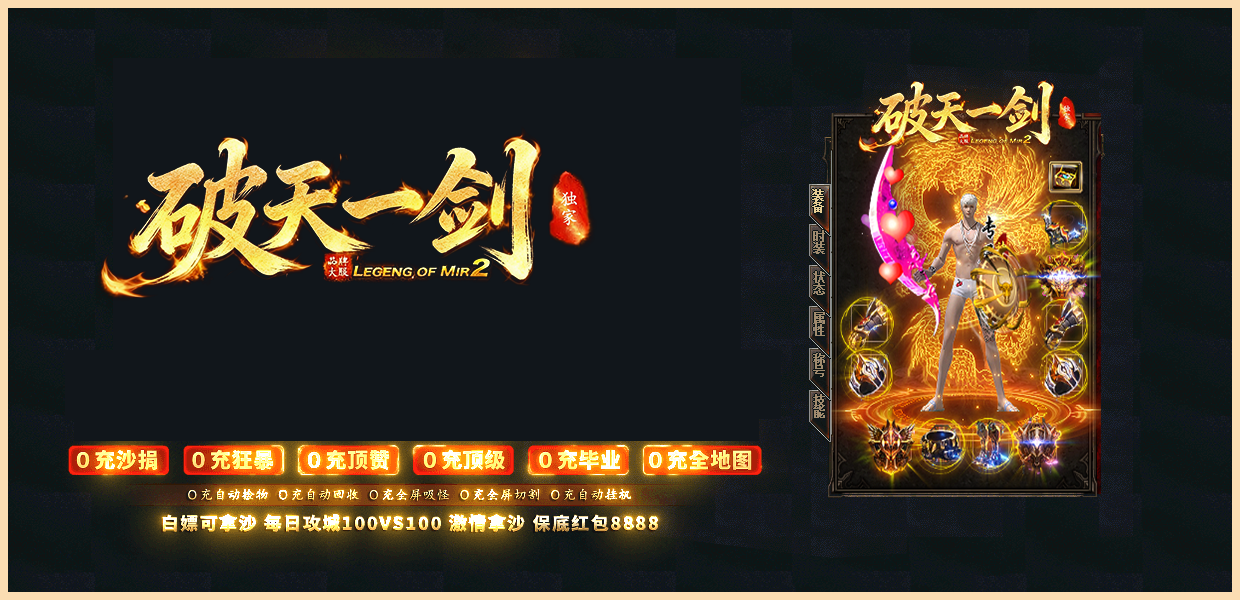 ★破天一剑★:已经稳定开放半年,千倍爆率,千倍激情,万人拿沙,所有装备靠打,白嫖永远不死!